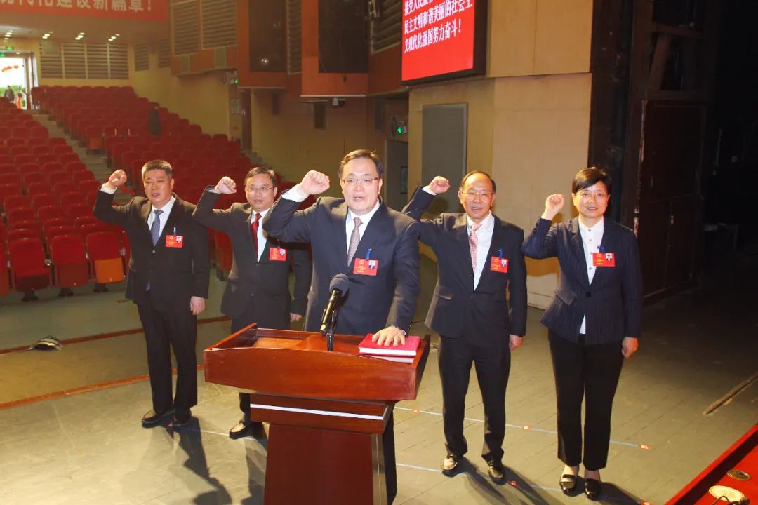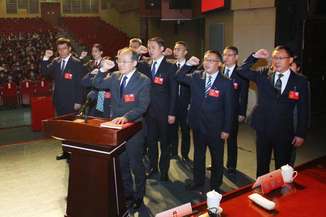 新当选的市十八届人大常委会主任、副主任,市人民政府市长、副市长,市监察委员会主任,市人民法院院长进行了宪法宣誓。