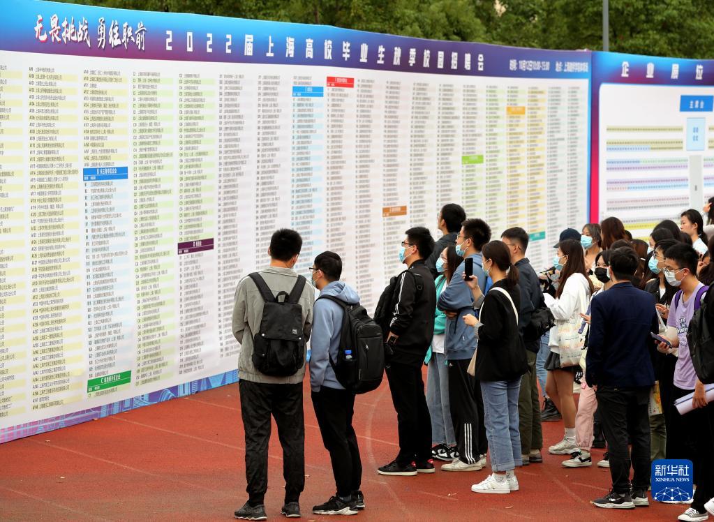 毕业生在2022届上海高校毕业生秋季校园招聘会上了解岗位信息(2021年10月12日摄)。新华社记者 刘颖 摄