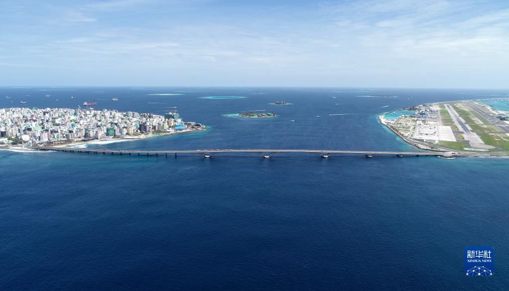 这是在马尔代夫航拍的连接首都马累和机场岛的中马友谊大桥(2019年8月30日摄)。新华社发(王明亮摄)
