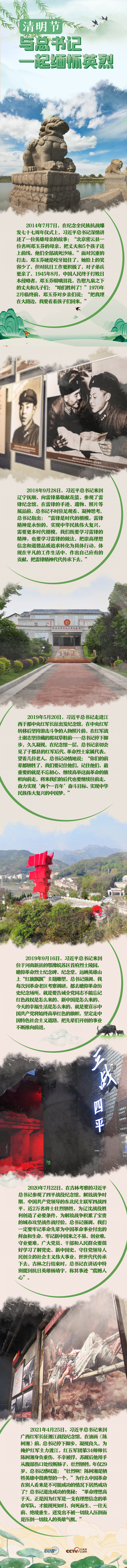 党的十八大以来,总书记在多个场合深情讲述英烈故事、赞扬英烈品格,多次就“崇尚英雄、学习英雄、关爱英雄”作出部署、提出要求。值此癸卯年清明节,让我们回望那些在历史长河中挺立的脊梁,一起缅怀英烈、致敬英雄。