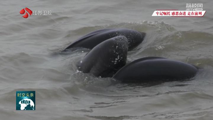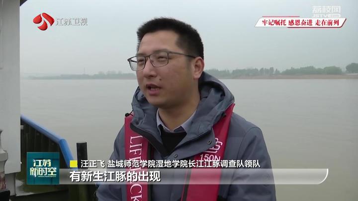 盐城师范学院湿地学院长江江豚调查队领队汪正飞告诉记者, 长江靖江段目击到最多的群次里有12头江豚,观测中也发现有江豚母子群,就说明这一片区域里边有新生江豚的出现,也从侧面证明了长江大保护取得的重要成效,可以说这边水质包括渔业资源都有所大大提升。