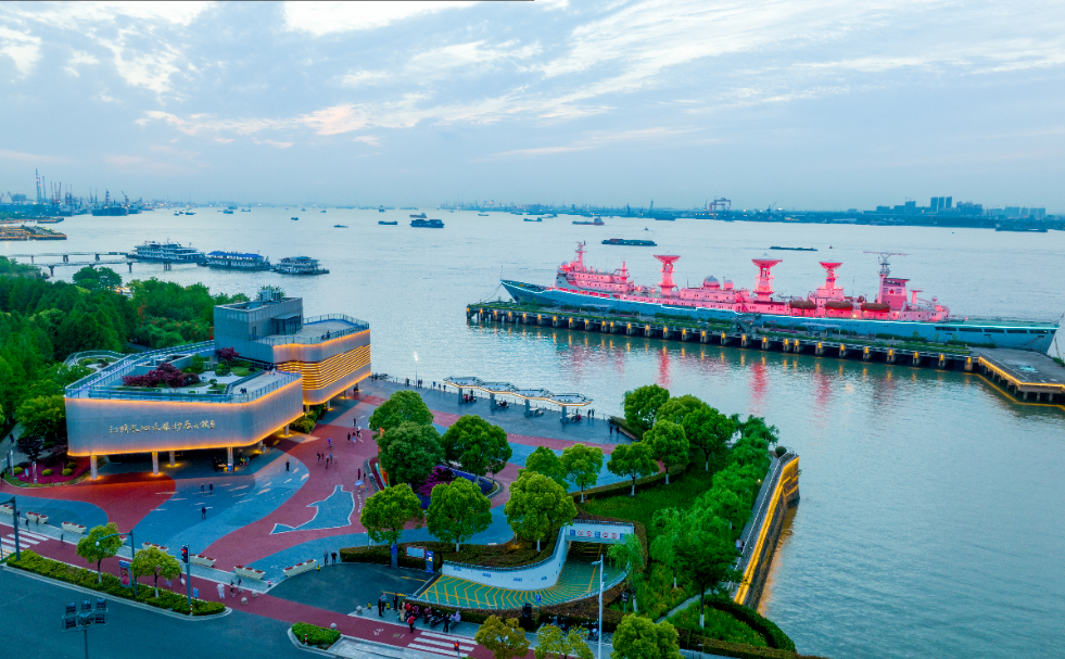保留和改造了扬子江船厂原址工业遗存,近距离观察远望二号船,触摸它的历史功勋。