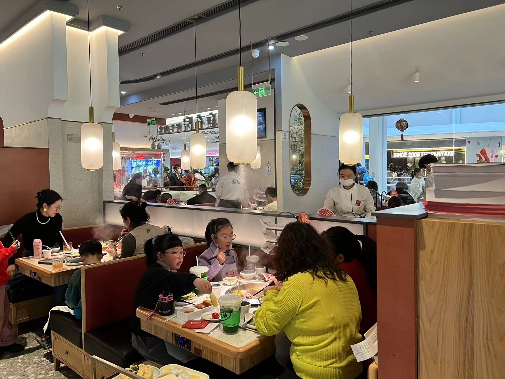“3位需要等多久?”“您好,前面还有6桌,需要帮您取个号吗?”中饭时分,泰州市海陵区万象城mixc内,三楼和四楼的餐饮区前,不少消费者正排队取号。泰州首店左庭右院鲜牛肉火锅(万象城mixc店)前,李店长正忙着给客人取号。