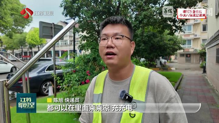 快递员陈旭说:“我们大热天都可以在里面乘乘凉、充充电,里面设施还是很完善的。”