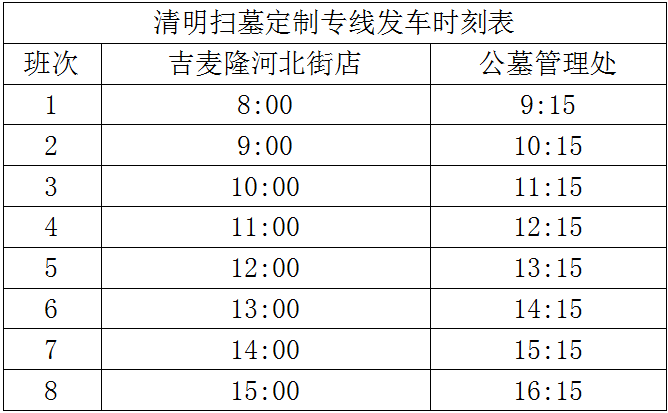 一、清明扫墓定制专线(吉麦隆河北街店—花山公墓)