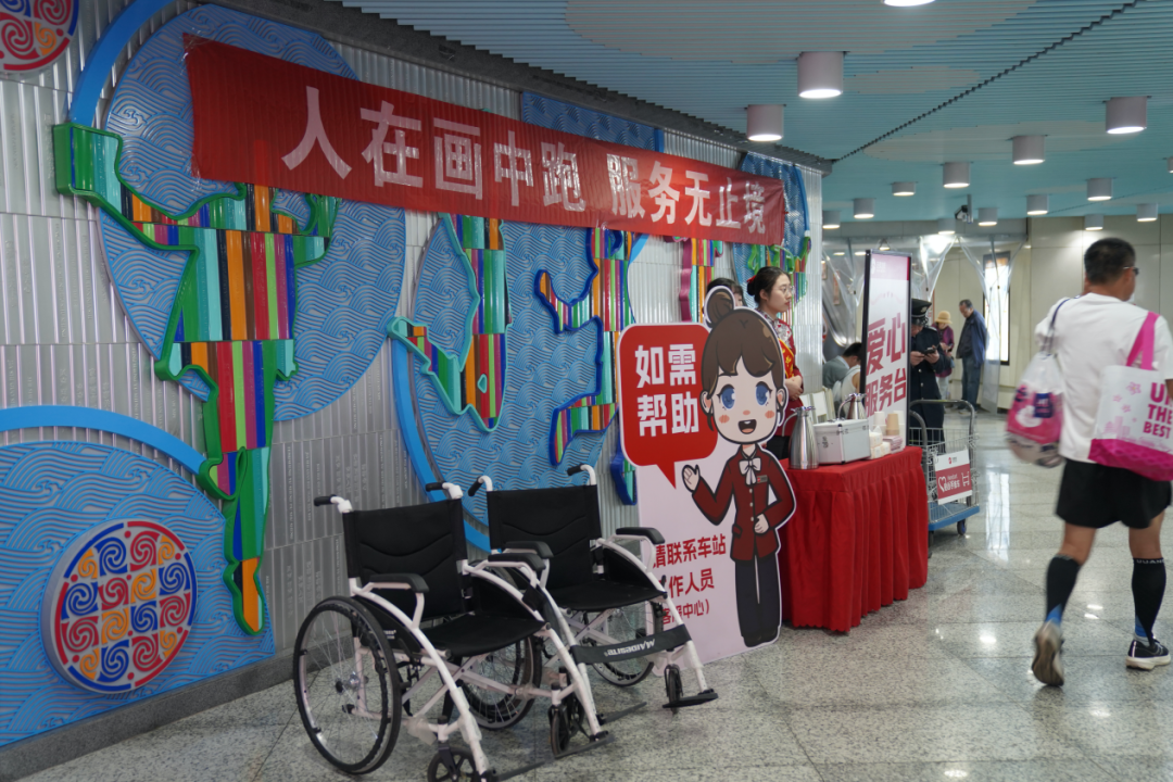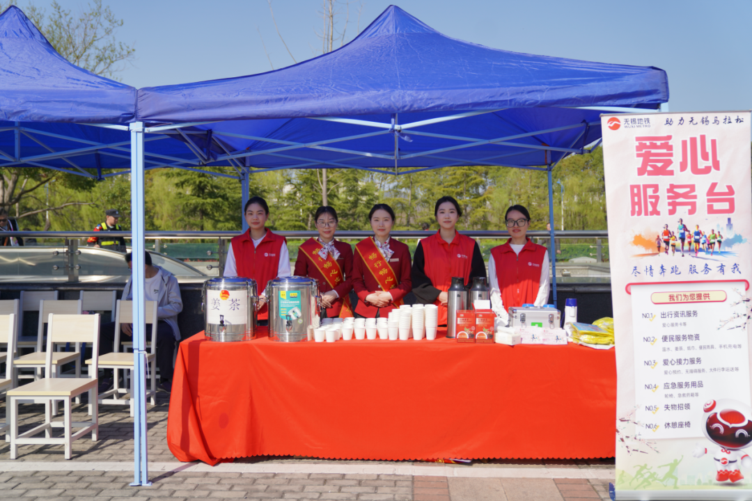 赛事当天,西园弄站、江南大学站、博览中心站设立爱心服务台,免费提供饮用水、姜茶、雨伞雨衣、便民药箱及轮椅等贴心服务,让温暖随行每一步。此外,江南大学站、博览中心站设置赛后专属拉伸区与医疗区,助力选手科学恢复、舒缓疲劳。